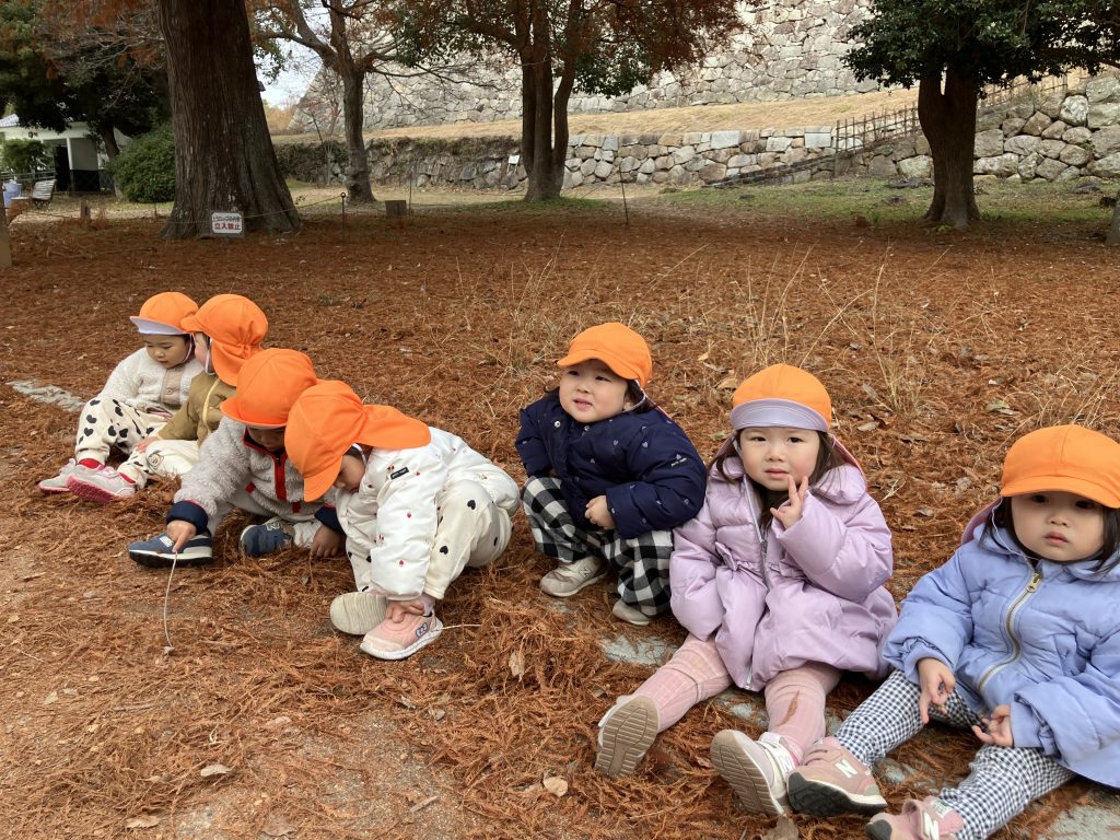 今日は寒い日になりましたがお友だちは元気いっぱい みんなで明石公園へ行きました 外遊びのご用意 靴下上手にはけるかな?? 先生と手をつないで歩いたよ かけっこよーいどん お友だちとお絵描き何を描いているのかな? 葉っぱ見 …