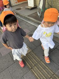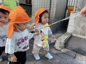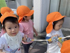 ひよこぐみさんは抱っこでお散歩に行ったよ
