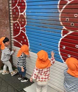 りすぐみさん、ひよこぐみさんは魚の棚へお散歩に行ったよ