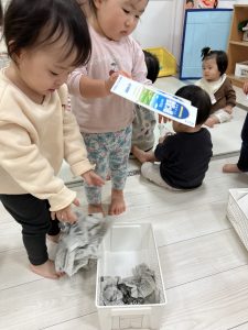 りす組さん、ひよこ組さんはおへやで分別ゲームをしたよ!