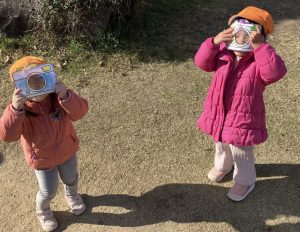 ねずみぐみさんはお製作で作ったカメラでパシャリ