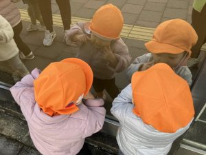 お友だちは今日避難訓練のあと、防災のお話を聞きました
