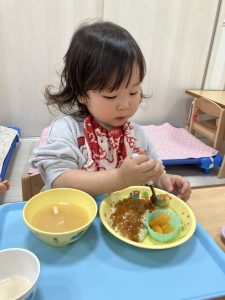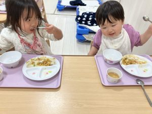 ほんとにできるのかなぁ…??お給食の時のお楽しみ