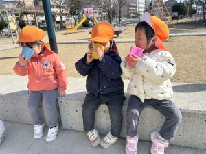 パワーチャージしてまた頑張って保育園まで歩いて帰ったよ
