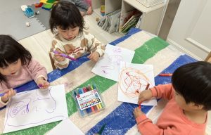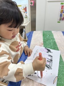 画用紙いっぱいにお絵描き素敵な作品ができたね