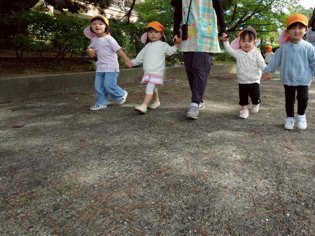 今日は短い時間ですが、 遊歩道にお散歩に行ってきました お友達や保育士と 手をつないで歩くのが上手になっています アリや虫を探したり、 松ぼっくりを見つけて喜んでいました またみんなでお散歩に …