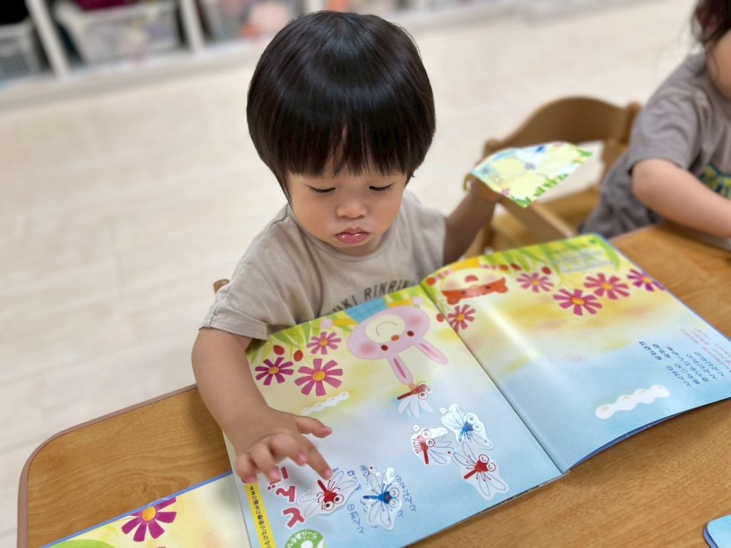 朝から雨が降ったり止んだりですね お迎えの際も気を付けて来られてくださいね 今日は月刊絵本のシール貼りをしました 指先を使って台紙からシールをはがし、 どこに貼ろうか考えながら貼っていましたよ …