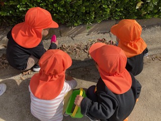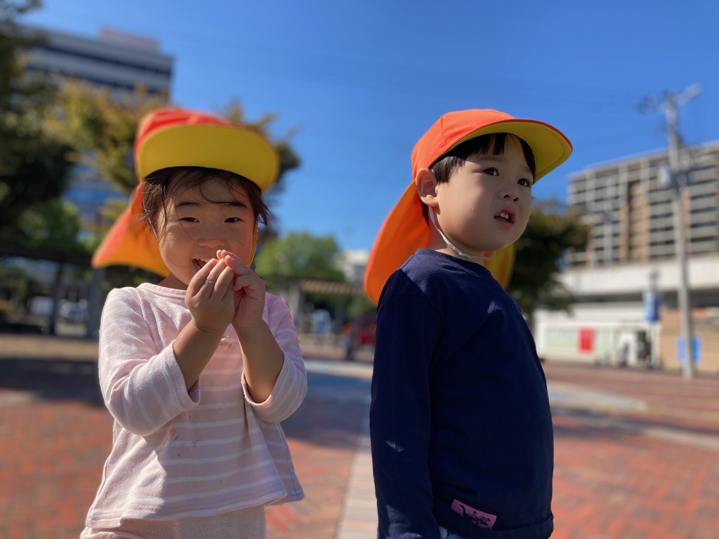 今日は吉塚商店街を通り2丁目公園へ ↓砂遊びに真剣な、りすグループさんと うさぎグループさんです♪ ひよこグループさんも楽しんでいましたよ ↓落ち葉が集まっている所で虫探しもしました! 「こわーい!!!」と言いながらも皆 …