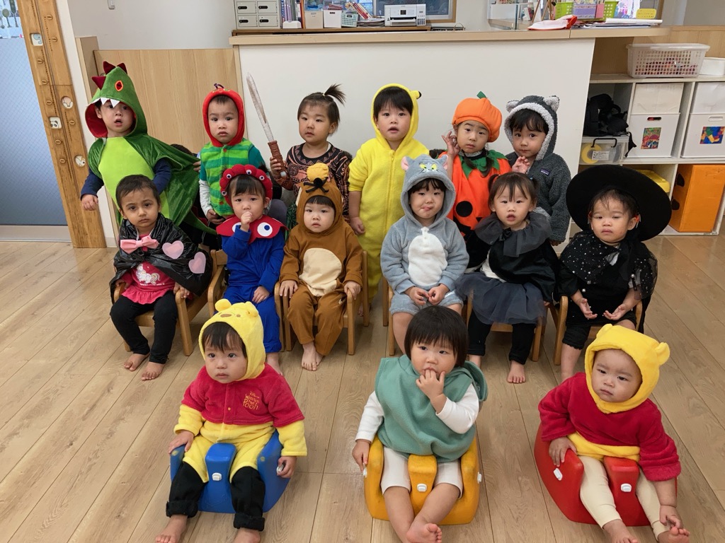 今日は『ハロウィンパーティ』をしましたよ みんな可愛い仮装姿で登園してくれました パーティーはダンスからスタートです 『グーチョキパーでパンプキン』をみんなで踊りました ダンスの後はお楽しみのゲームです ねずみグループさ …