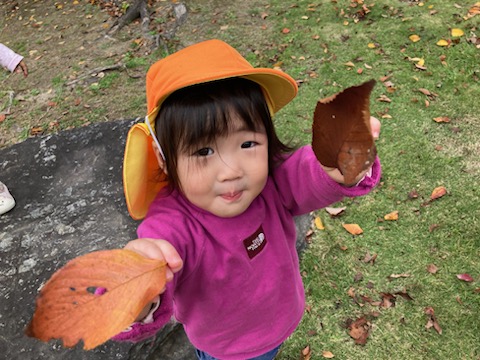 今週はいいお天気が続きましたね 公園に行ってたくさん体を動かすことができました 落ち葉やどんぐりがたくさん落ちていて季節を感じることが 出来ました 落ち葉拾ったよと見せてくれました お絵描き楽しいね 広場で遊びましたよ …