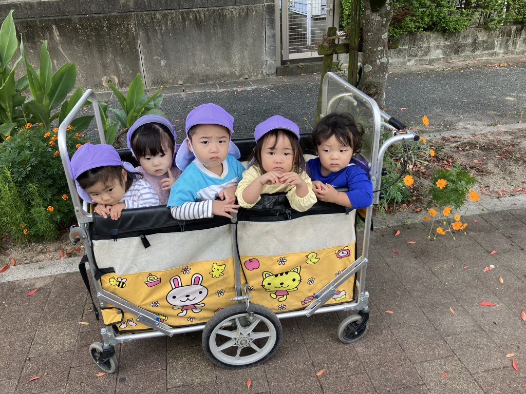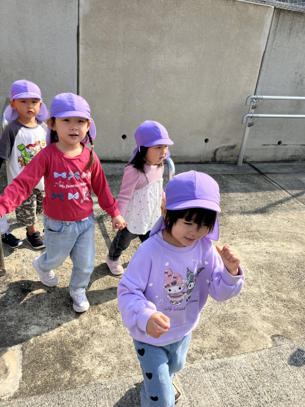 朝の肌寒さから一転、秋晴れのぽかぽか陽気になりました ほのか組はお散歩カーで周辺をお散歩しました ひなた組は園庭でのびのびと遊んでいましたよ ボルダリングに挑戦!上手に登っています 砂場遊びやトンネルくぐり、夢中になって