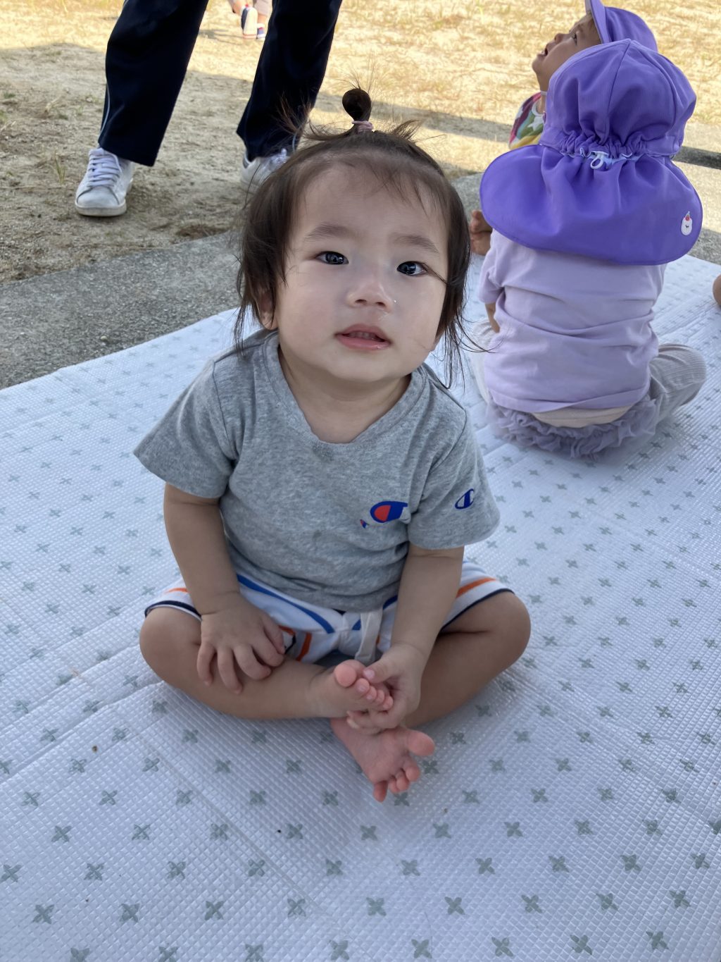 今日はみすず組がお散歩に行きました 風が吹くと涼しくて気持ちがよかったです 手に砂が付くとじっと見つめています… 大きなボールを抱えてみたり 外の …
