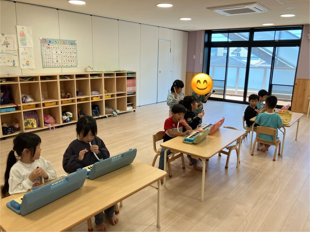 今日は園内からいろいろな楽器の音が聞こえてきましたよ お部屋をのぞいてみると・・・ ほのか組が音楽に合わせて、ノリノリで上手にタンバリンをたたいていました いい音がするね   あまね組はピアニカとウッドブロック
