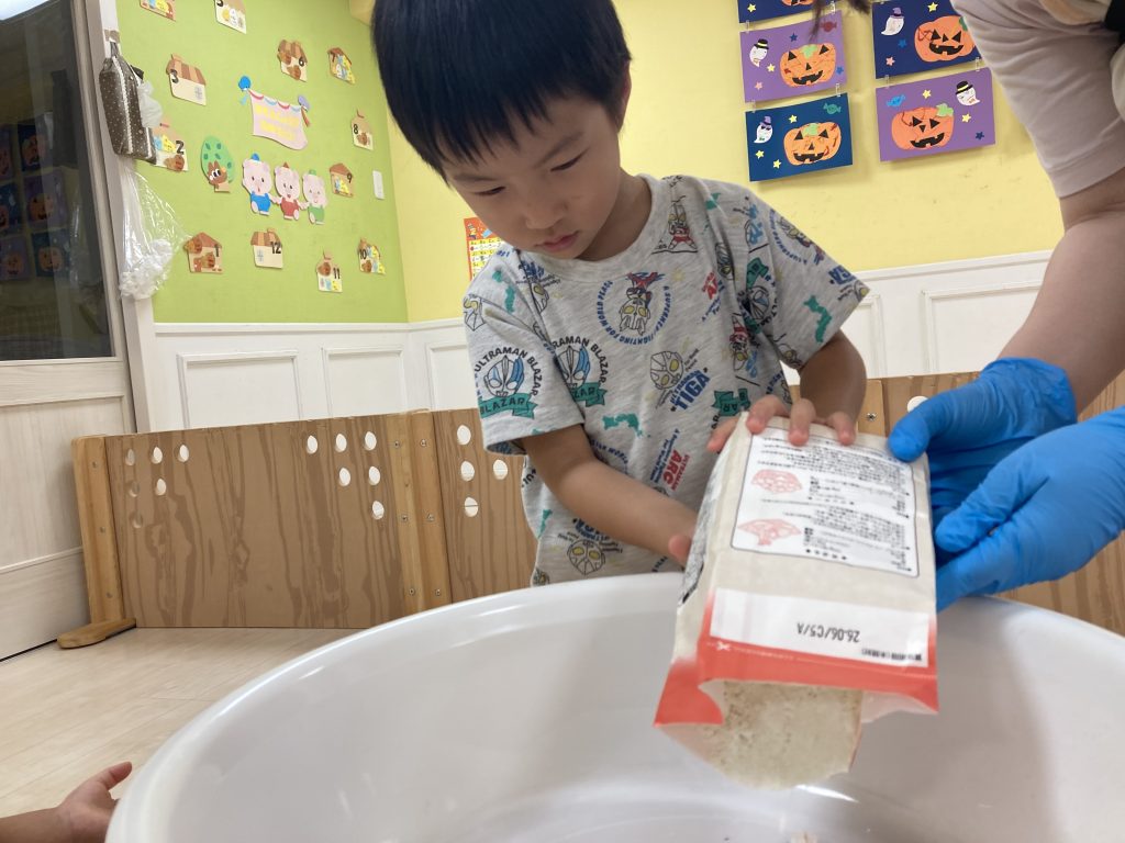 お天気がいい日になりましたね 残暑が厳しい今年はまだまだ 暑い日が多くなりそうです 今日は、ねずみ組のお友達は はさみ製作をしました✂ 真剣にはさみを使ってさつま芋を 作りました 少しずつ使い …