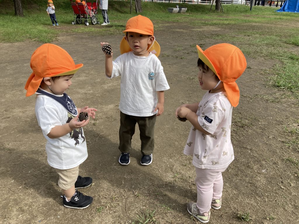 天気が良い日には、お友達や先生と手を繋いでお散歩をしたり 広場に遊びに行ったりしましたよ 何度も登っているうちに傾斜にも慣れてきて、 身体の使い方が上手になってきたね 草むらの陰に隠れて「ばぁ …
