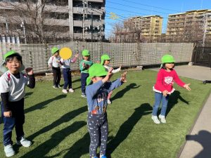朝の体操を園庭で行っています!