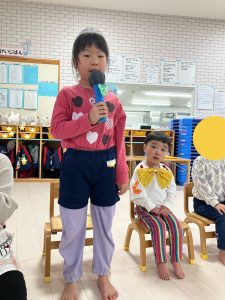 みんなの前に立つと少しドキドキしながらも、嬉しそうな表情の主役のお友だち