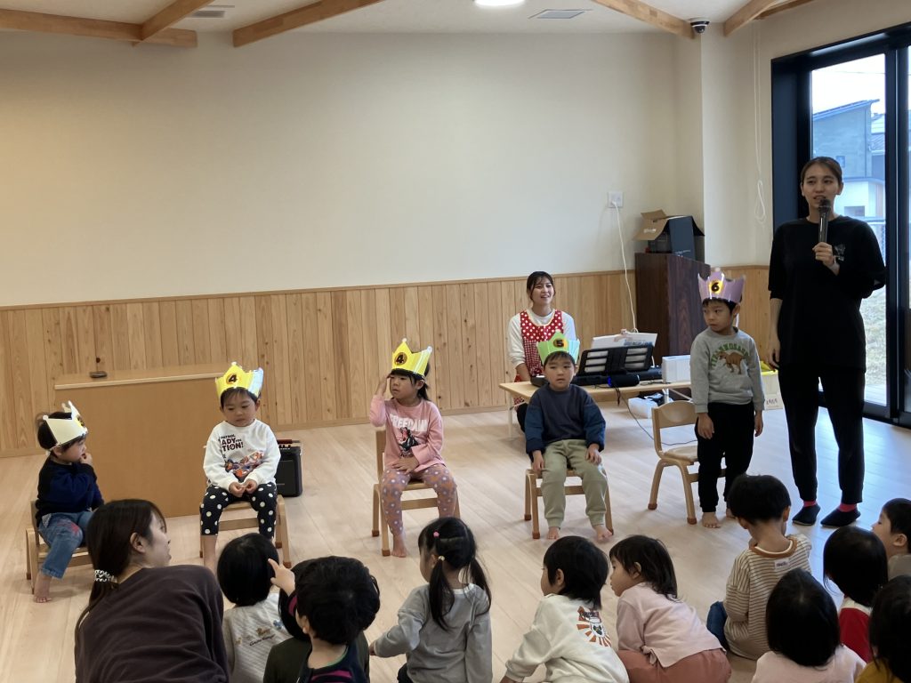 今日は11月生まれのお友だちのお誕生会でした 8人のお友だちがみんなにお祝いしてもらいました 「何才になりましたか?」「好きな食べ物はなんですか?」の質問に、緊張しながらも元気よく答えてくれましたよ 先生からお誕生日 …