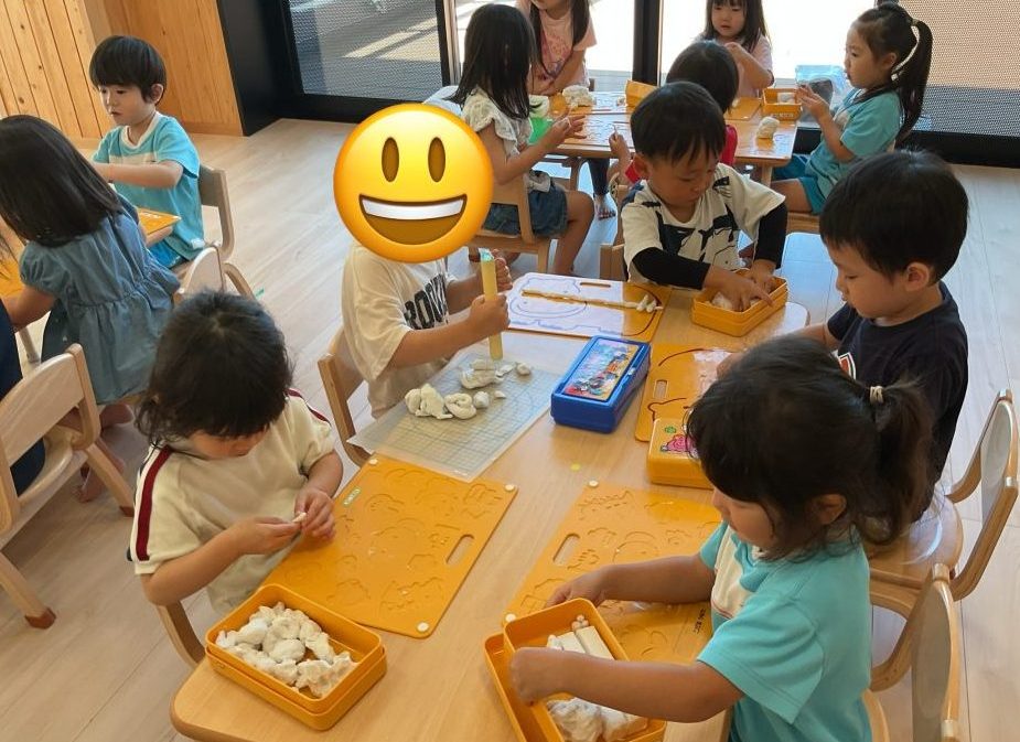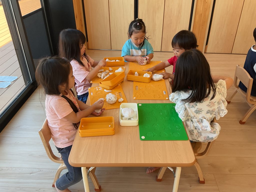 ちいさくちぎって丸めたり、ヘラを使って伸ばしたり切ったりと工夫して遊びますムード