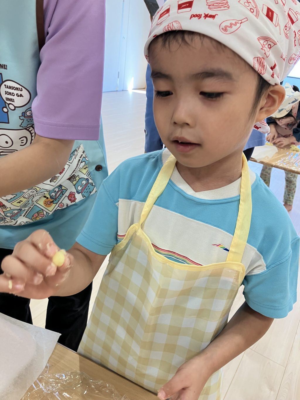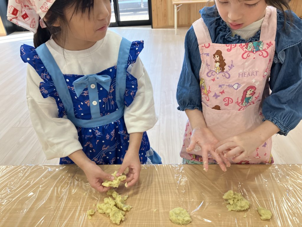 次は形を作ります♪作り方を教えてもらったらいざ挑戦!!なかなか難しかったけど、みんなとっても上手にできました(^^♪