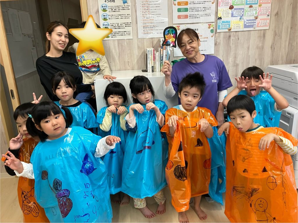 あまね組は自分たちで作った衣装を着て、おばけのポーズでパチリ