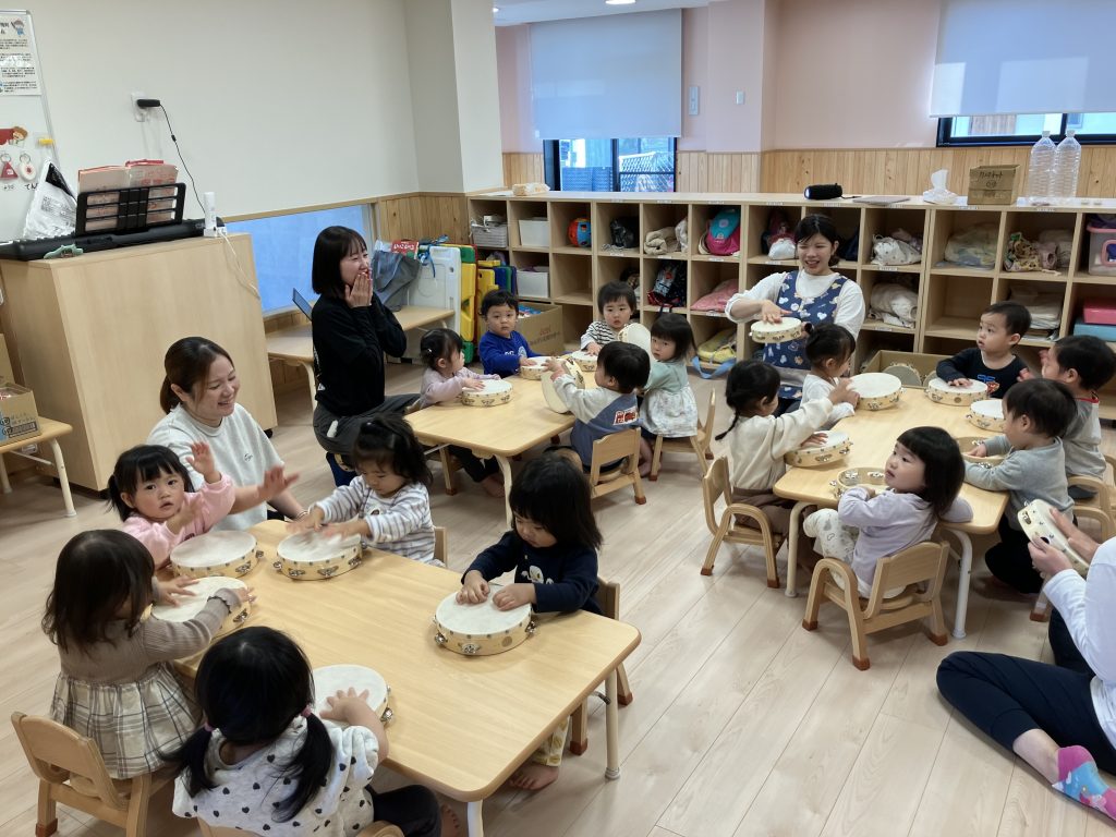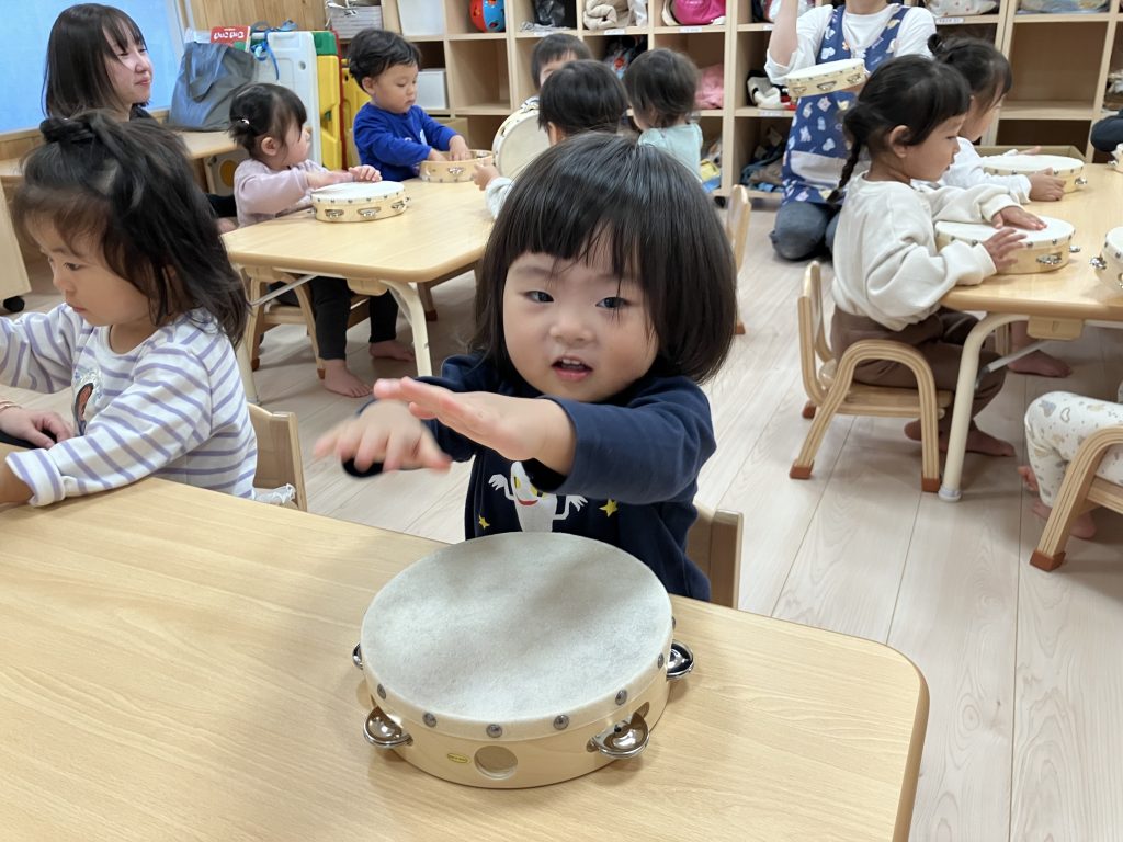 ほのか組が音楽に合わせて、ノリノリで上手にタンバリンをたたいていました