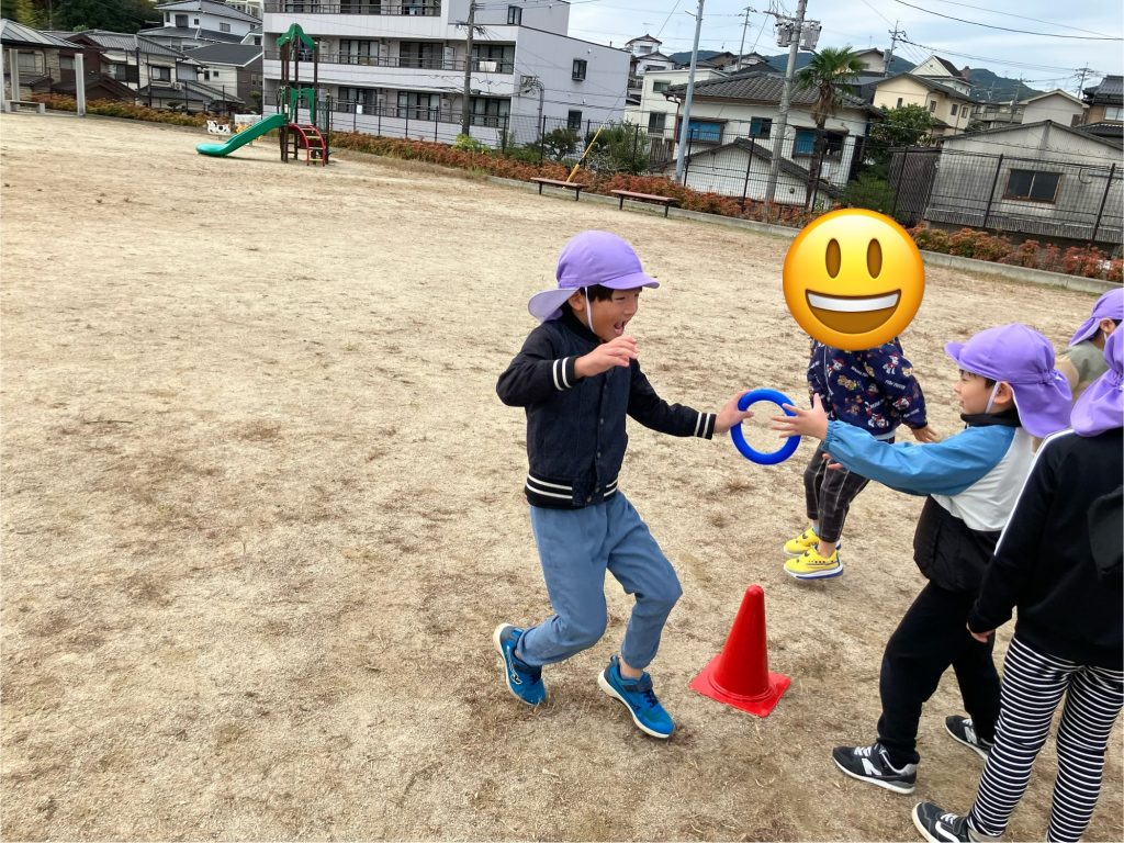 わかば組・あまね組は、公園までお散歩に行き、かけっこをしたり、リレーをしたりして体を動かしました♬