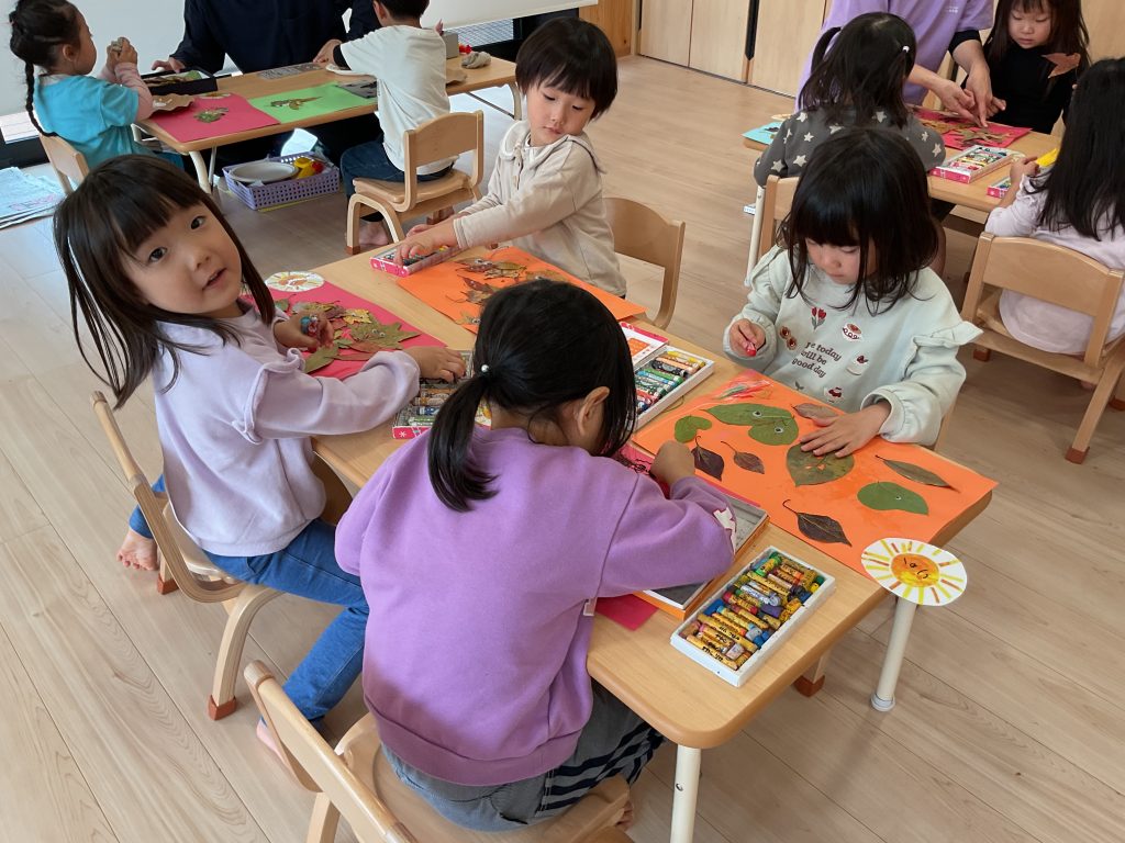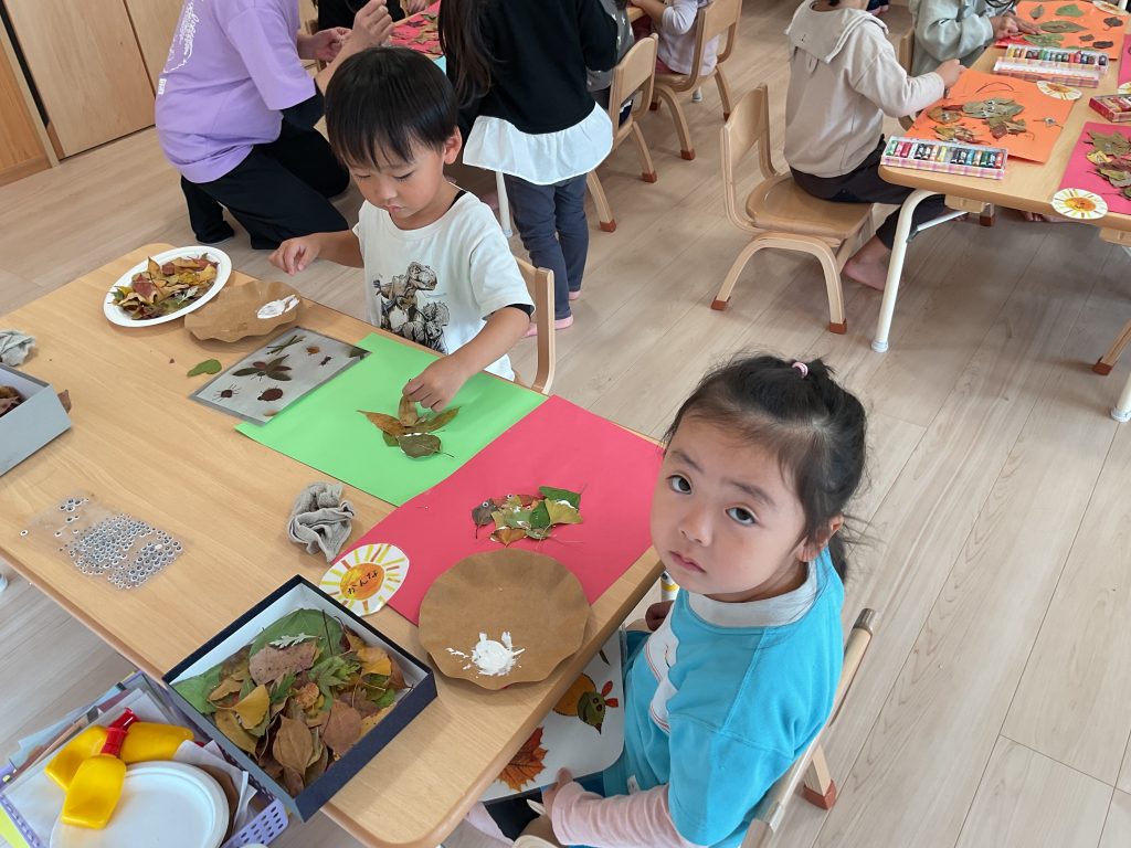 ひなた組は、落ち葉を使って製作をしました♫ どんな形にしようか考えながら楽しく貼っていました(^^)