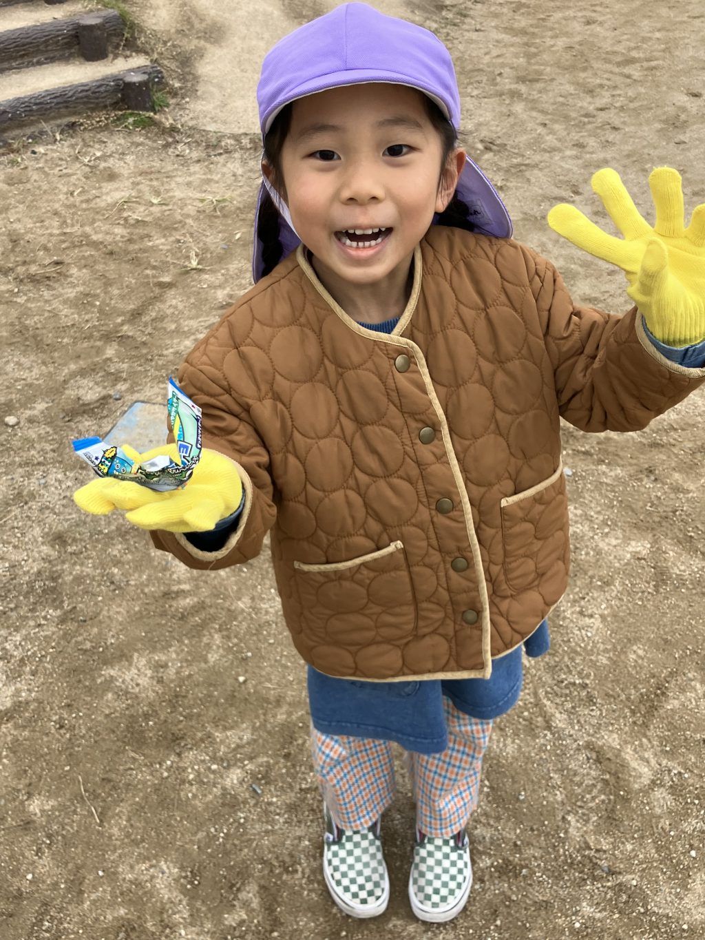 歩道に落ちているゴミを拾いましたが、園周辺の道は普段からほとんどゴミが落ちておらず