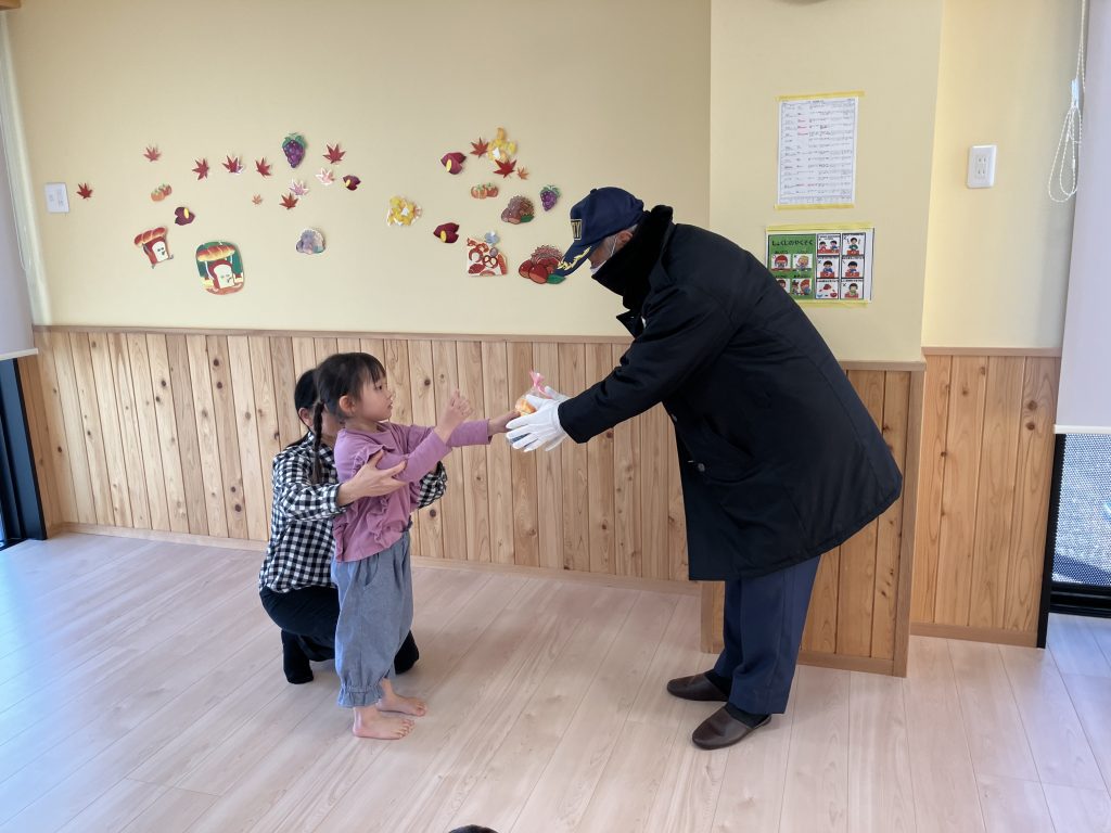 ひなた組は、毎日、駐車場でみんなの安全を見守ってくださっている警備員さんへ「ありがとう」と大きな声で感謝の言葉を伝えました