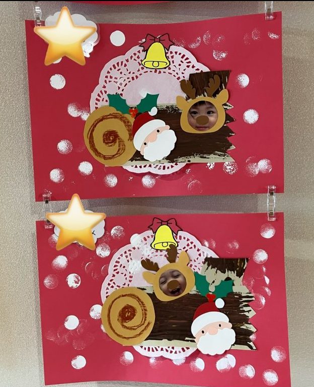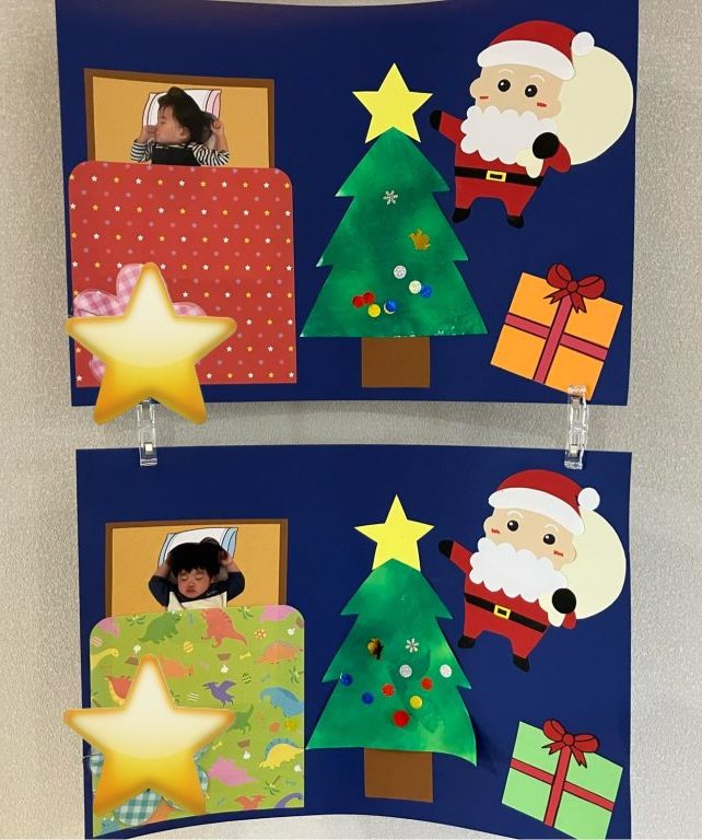 12月に入り、お部屋の前の製作もクリスマスに とってもかわいい製作が並んでいます