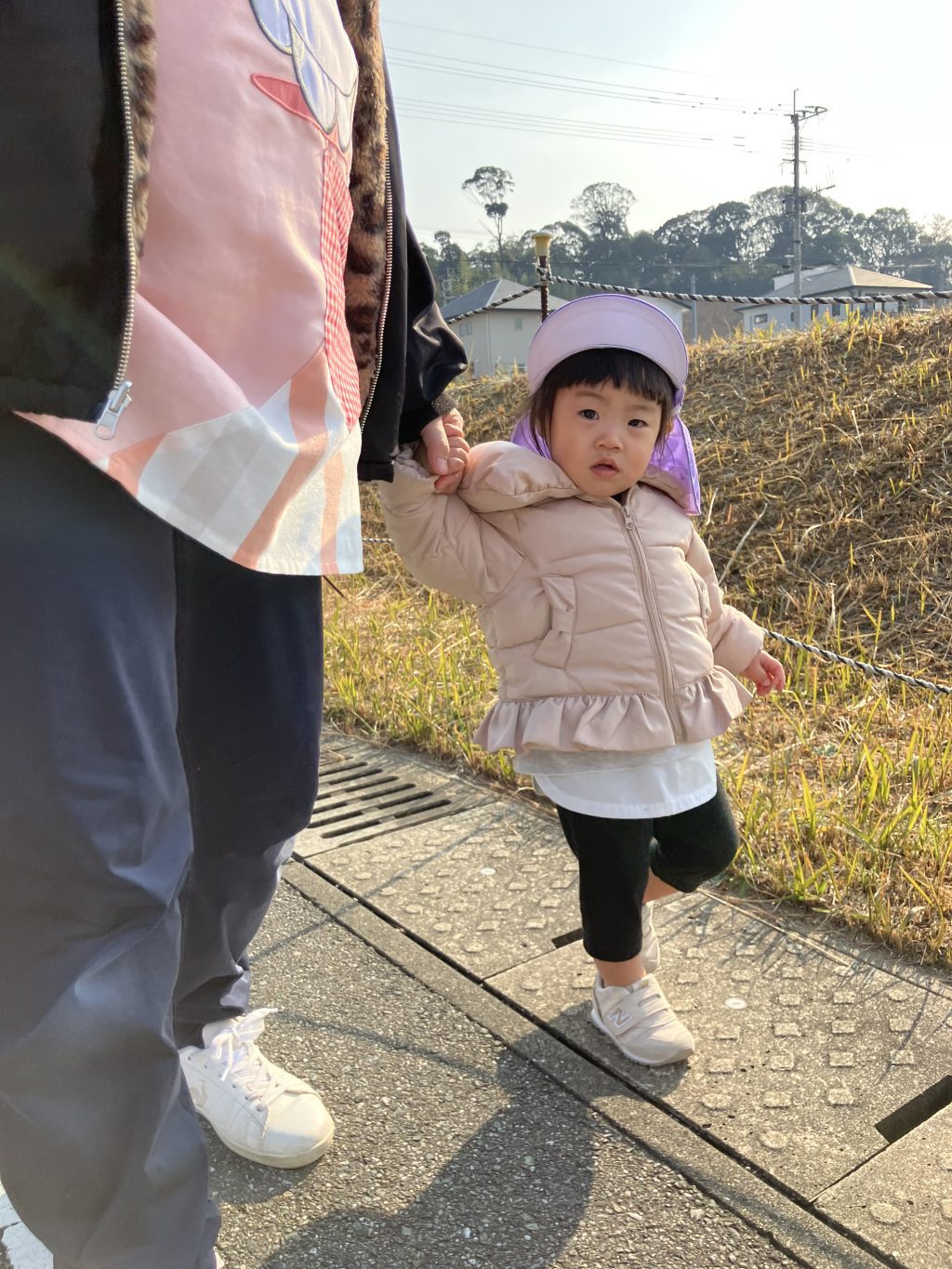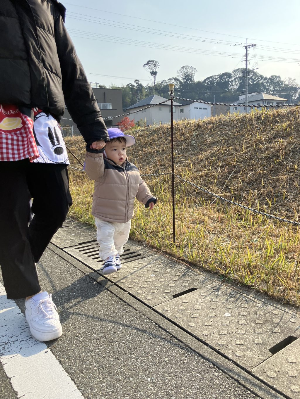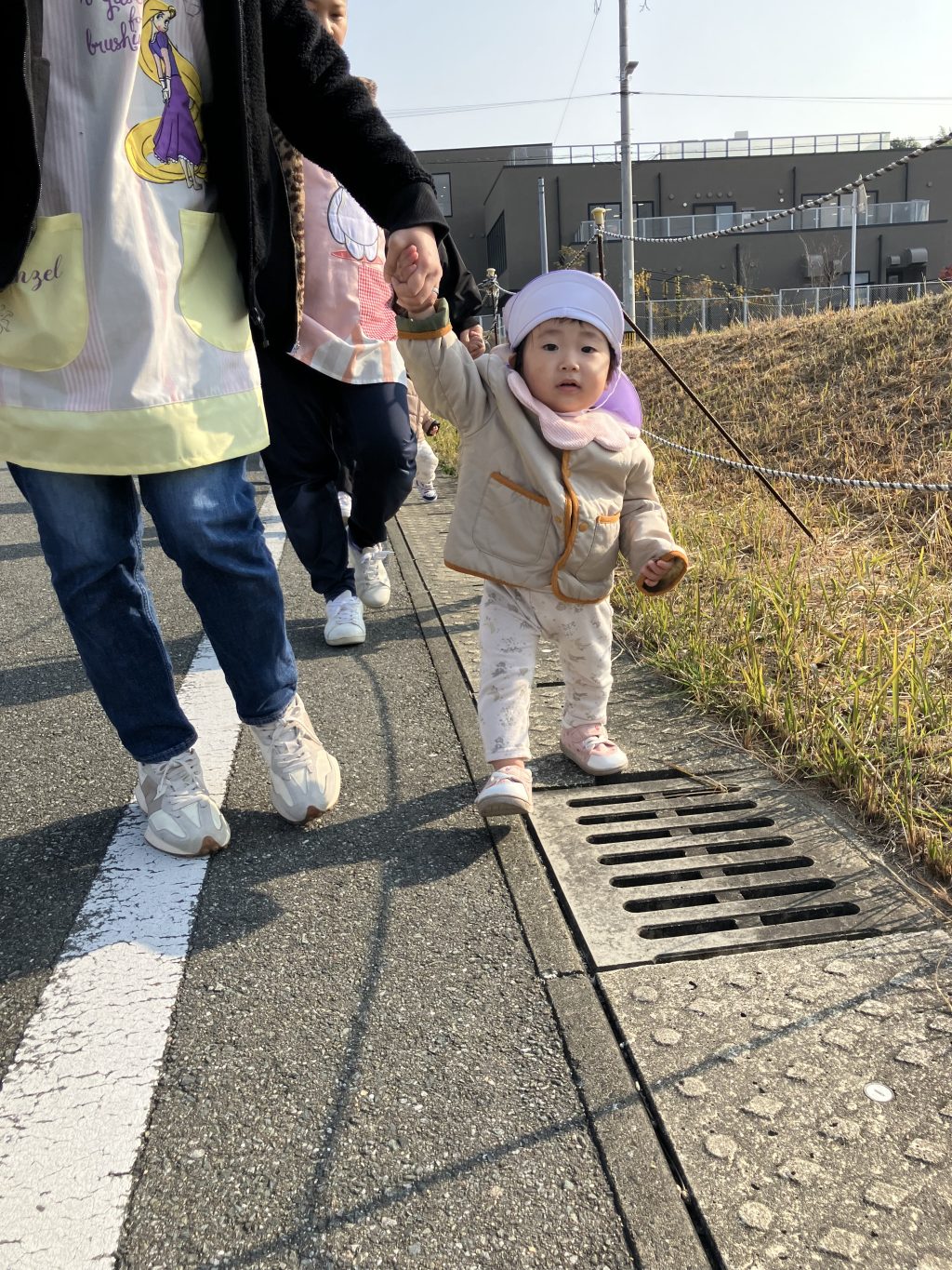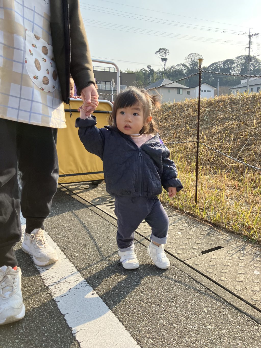 先生と手をつないで。歩くのもとっても上手になっています