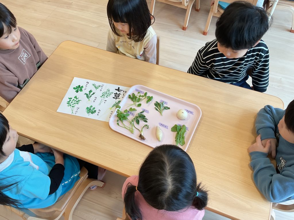 無病息災を祈って、園ではおやつに七草粥をいただきました