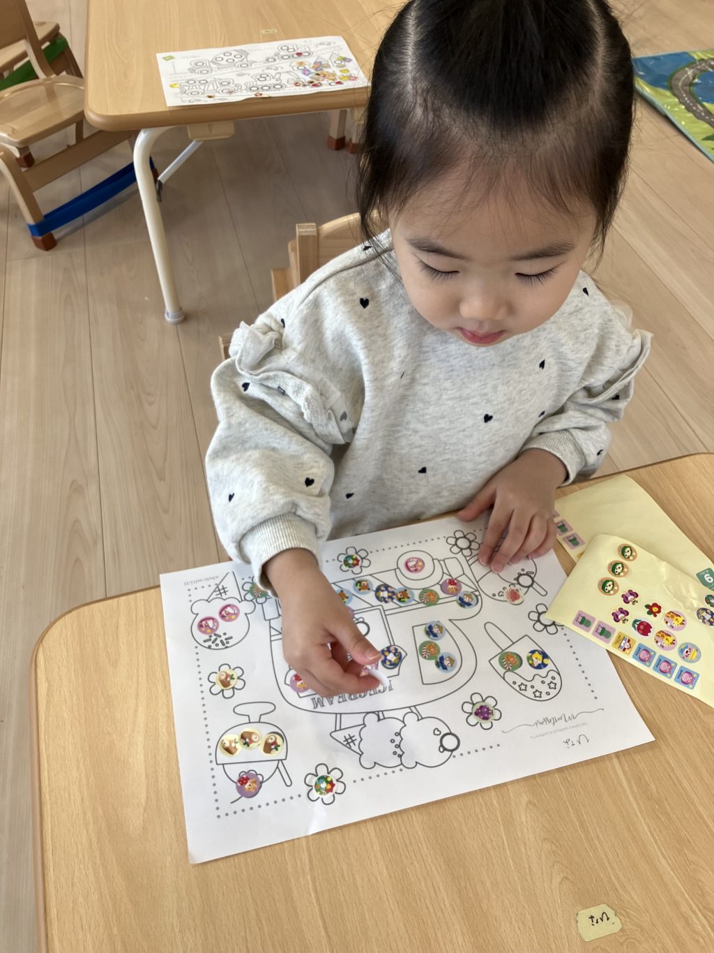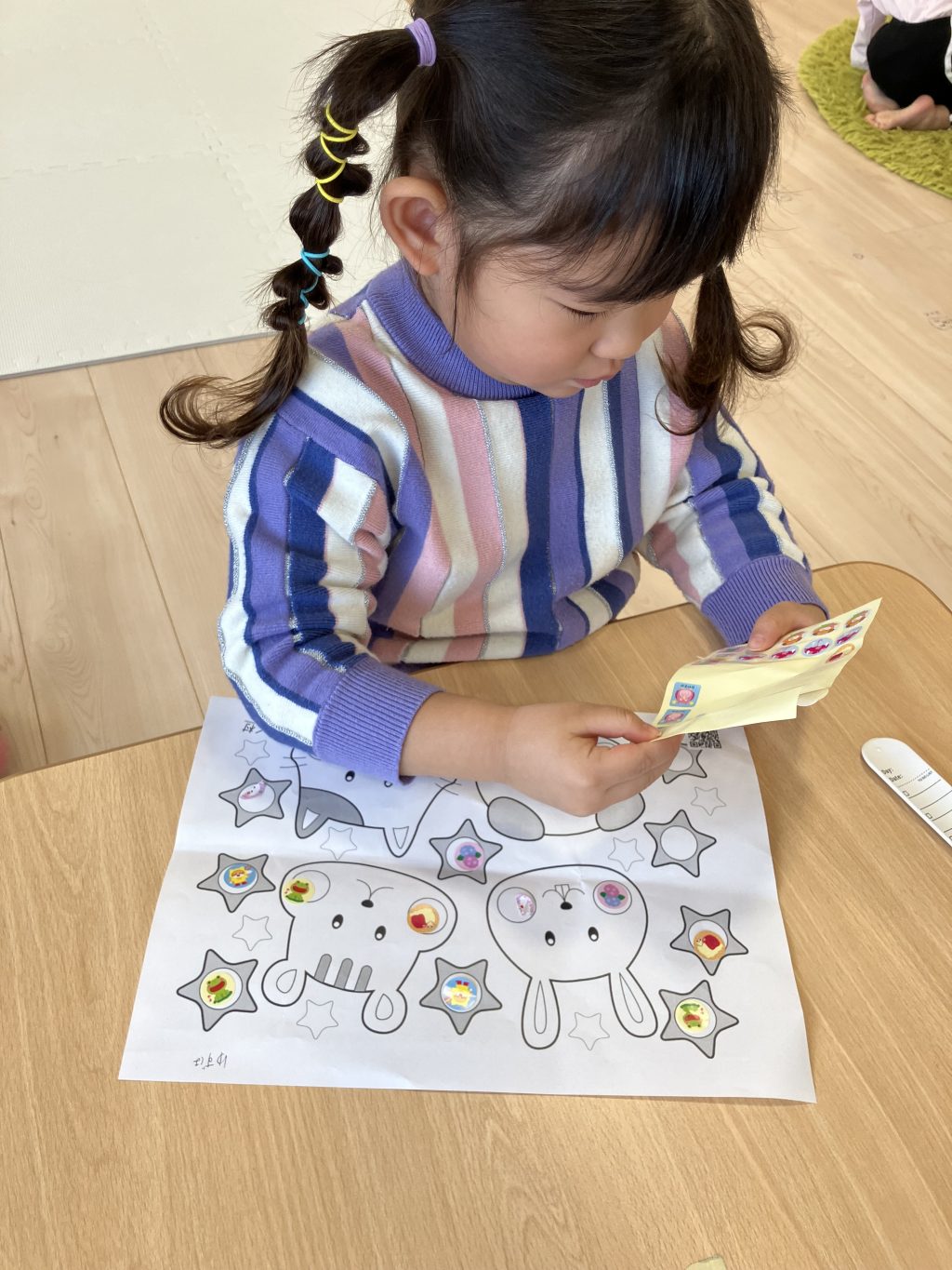 じっくりとシール貼りをしたり目