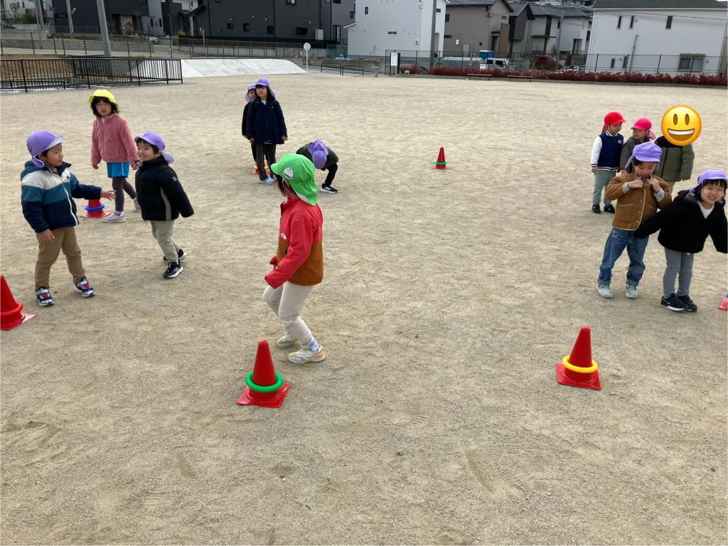 公園ではかけっこや、環状線リレーをして身体を動かしました