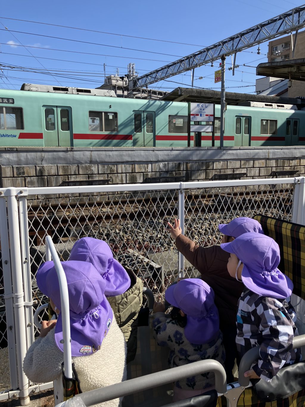 筑紫駅に着くと、電車をみて大喜び