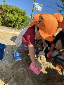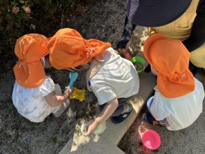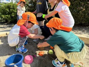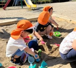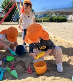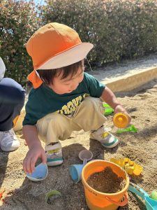 公園では、あちらこちらと探索遊び!、また砂遊びといろんな遊びを楽しんでいますよ