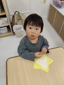 お部屋に帰ってからは、ねずみ組さんは制作に挑戦しました