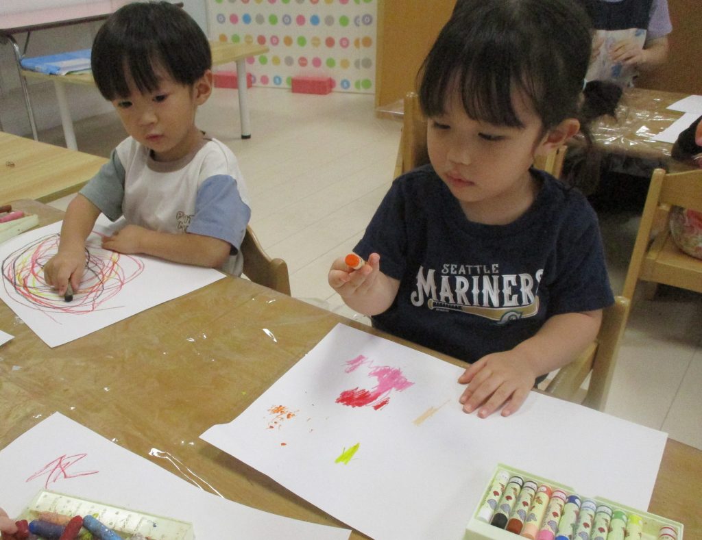 最近の子どもたちの様子です 1、2歳児さんはクレヨンでお絵描きをしました いろんな色のクレヨンを選んで、画用紙に描くことを 楽しんでいましたよ 「何色にしようかな~」 お絵描きでは丸を描けるお友だちもいたり、 使ったクレ …