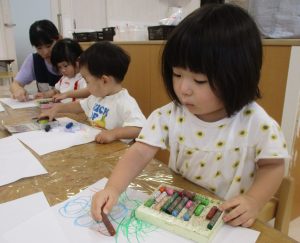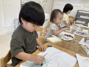 1、2歳児さんはクレヨンでお絵描きをしましたるんるん (音符)