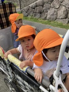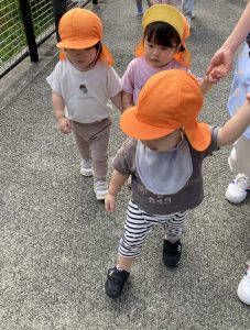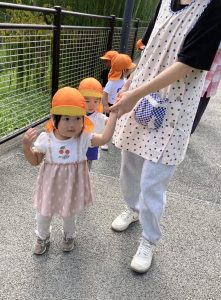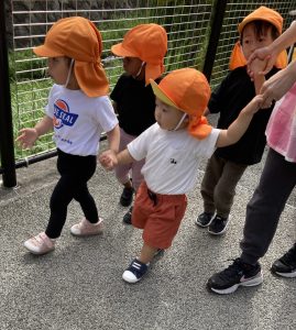 保育士やお友だちと手をつないでお散歩です揺れるハート
