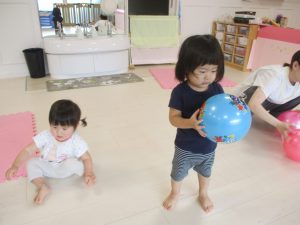 ひよこ組さんはボール遊びをしましたグッド (上向き矢印)