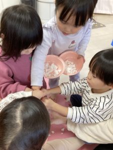 牛乳パックを小さくちぎってみましたるんるん (音符)