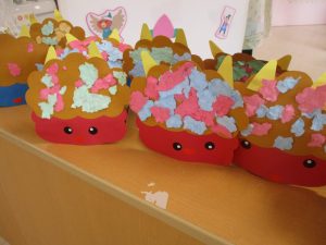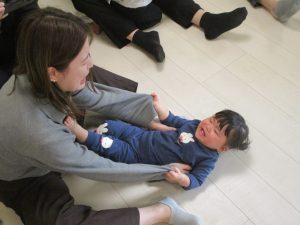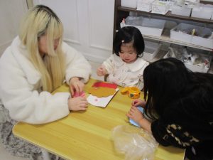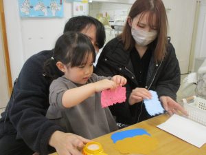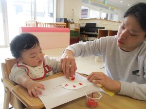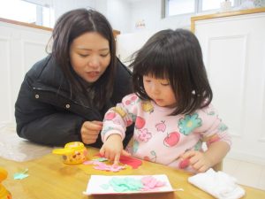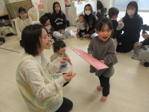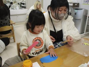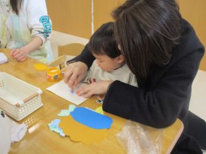 わらべ歌遊びをしたり、鬼のお面の製作で
