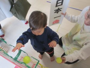 ころころころ…上手にころがるかなあ?玉転がしも、しました。