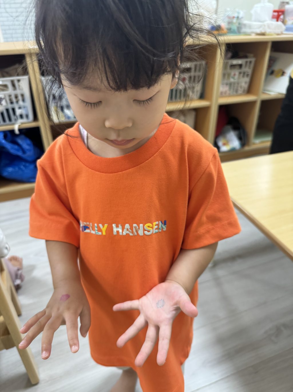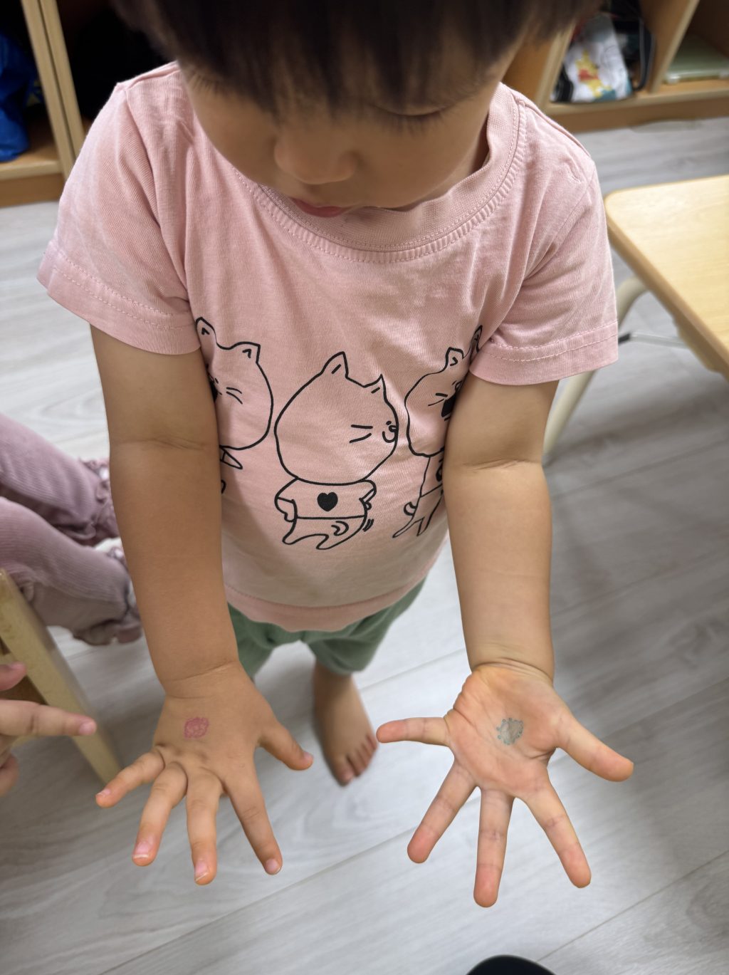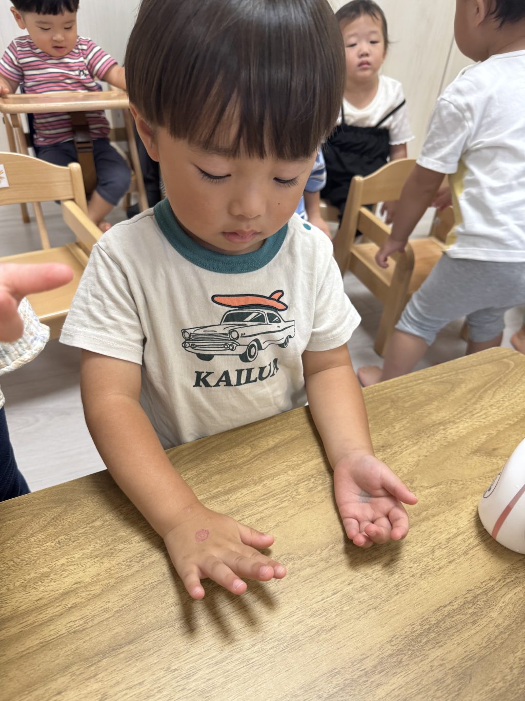 スタンプを用いてバイ菌の付いちゃった手を綺麗に!