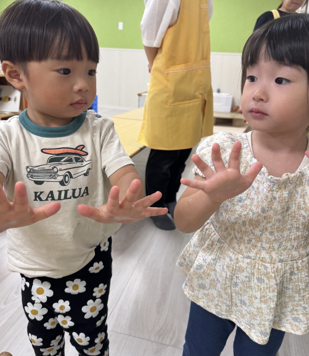 バイ菌も消えてピカピカになった手を見せてくれました!