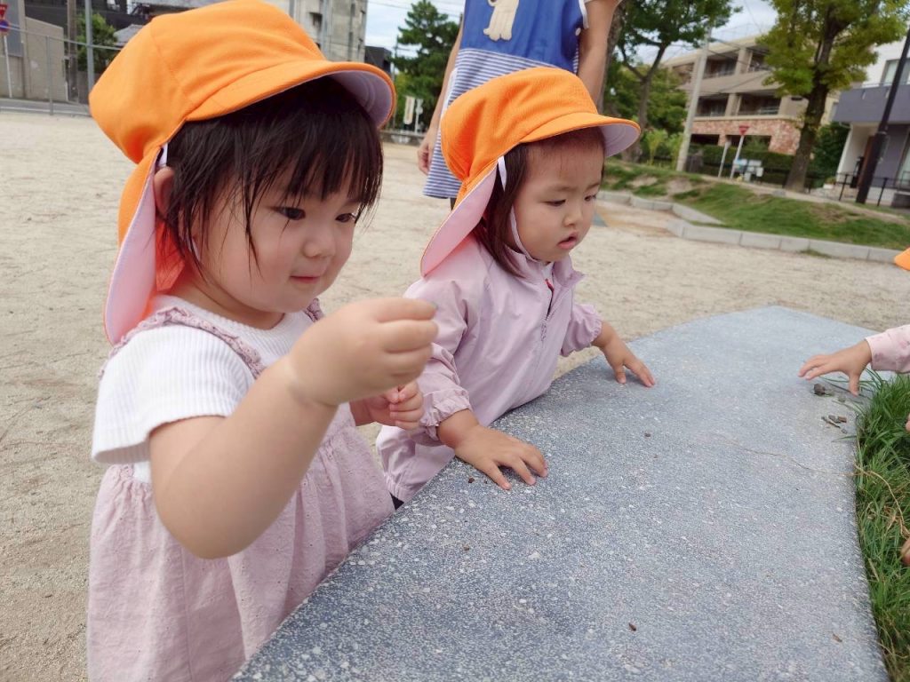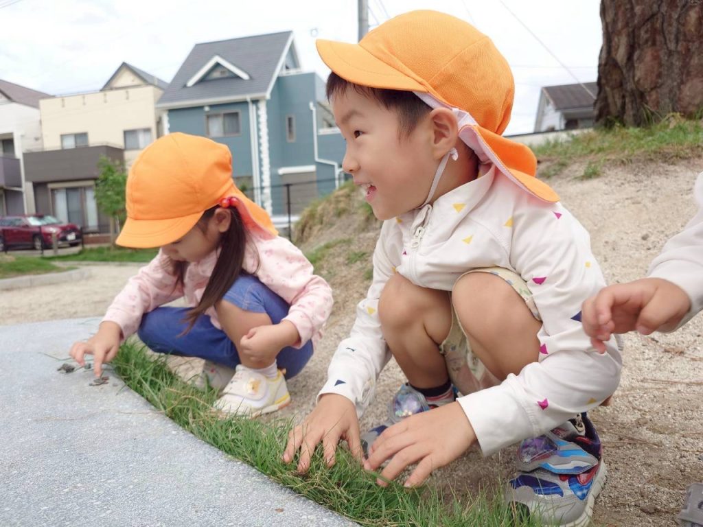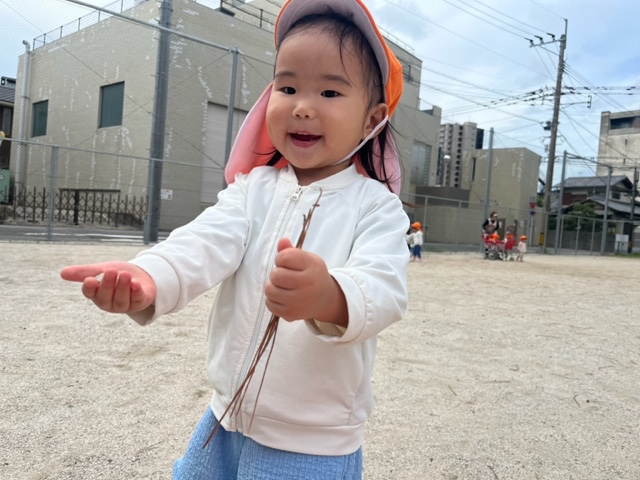 石や木の枝、葉っぱを探して拾っているお友達もいました