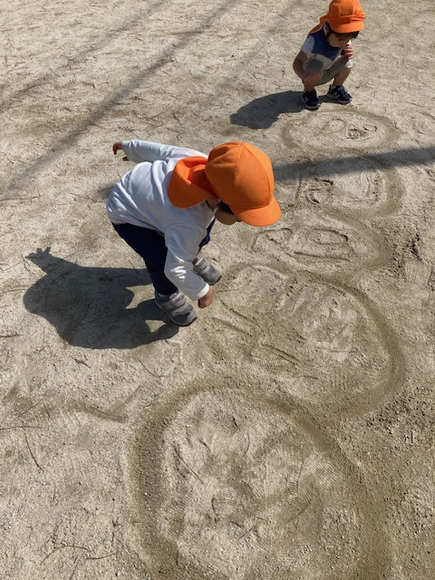 葉っぱ集めや、お絵描きにも夢中の子どもたちでするんるん (音符)るんるん (音符)