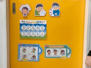 くしゃみや咳をする時は、口を手で隠すことを伝えると